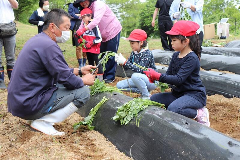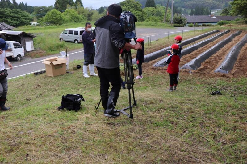 26日、1・2年生で芋の苗植えをしました。この日まで保護者の方で畑を整備してくださり、当日は地域の方も来ていただき、保護者とともに300苗を植えました。活動が始まる前に雨がぱらついて心配しましたが、みなさんの熱意からか、その後降ることもなく、予定より早く終了しました。10月に芋ほり、11月に収穫祭の予定です。お力添えいただきました皆様、本当にありがとうございました。なおこの活動にはMRTとUMKの記者さんも来ていただき、放映をしてくださいます。うれしいことですね。
