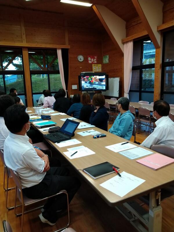 今週、「夕日の里にこにこ教室」(放課後子ども教室)の指導員の方と本校教職員との意見交換会がありました。児童は全員この教室を利用していることから、一人一人の心身ともに健全な育成のために話合いをしています。今回は偶然にも、1・2年生の芋の苗植えのテレビ放映の時間に重なったため、参加者全員で生き生きとした子どもたちの様子を見て、元気をもらいました。この教室の名称通り、みんなが「にこにこ」になるためにどうすればよいか、これからも考えていきたいと思います。利用する児童のみなさんも「よろこばせごっこ」を頑張っていきましょう。
