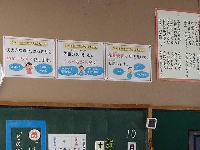 14日(水)、北部教育事務所と町教育委員会の先生が来校され、3年生の国語の研究授業がありました。3年生3人は少し緊張気味の中、手を挙げたり、考えたり、一生懸命に頑張っていました。その後、先生向けの勉強会があり、RS(リーディングスキル)を中心に、わかりやすい授業づくりについて、一生懸命勉強しました。今度は来月一年生で予定されています。これからも、学力アップに頑張ります。