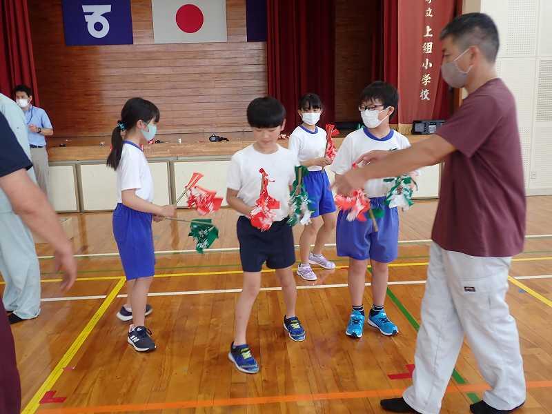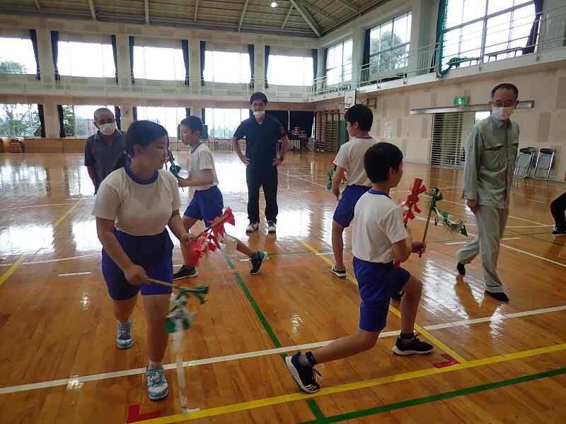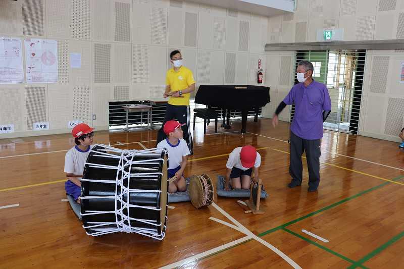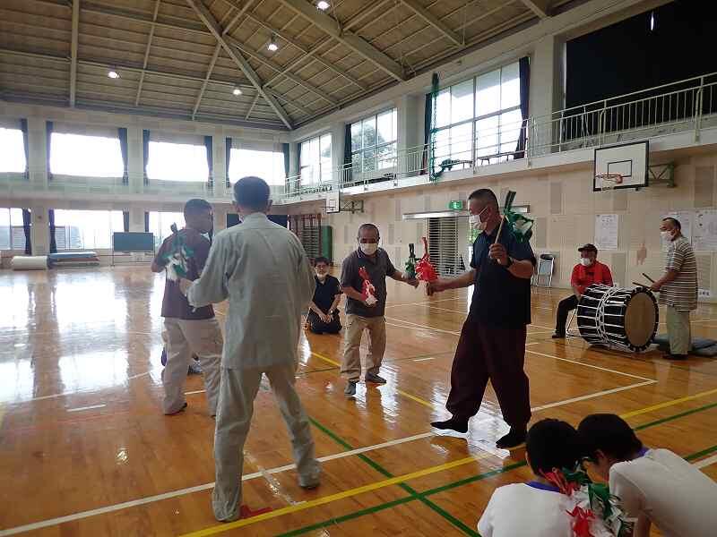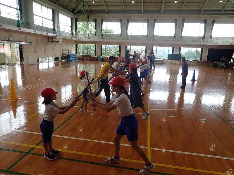 教えていただきます。運動会や夕日の里フェスタ等の学校や地域の行事で、練習の成果を披露します。(神楽は5・6年生のみです。)