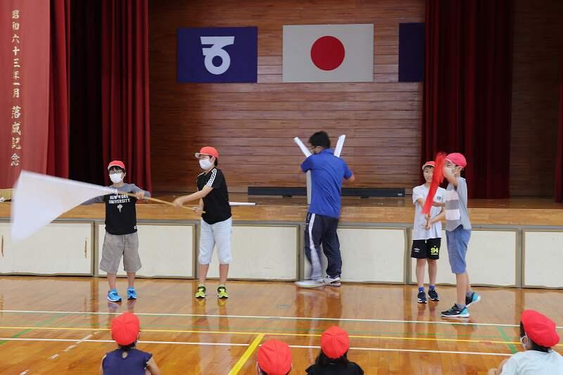 7月19日(月)の朝の時間に、運動会(9/12実施)に向けての団決定と結団式がありました。今年は、いつも通り