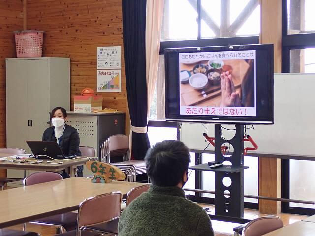 1月24日(月)の朝の時間に三ヶ所小学校の栄養教諭「吉田先生」に食育講話をしていただきました。