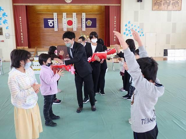 3月28日(月)に離任式がありました。4名の先生方が上組小を離任されます。本当に寂しく名残は尽きませんが、先生方の新たなステージでのご活躍を心より応援しております。私たちも、この上組小がよりよい学校となるよう日々努力していきます。