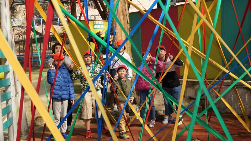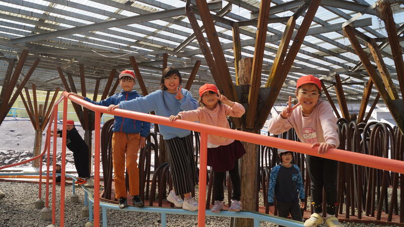 阿蘇ファームランドの元気の森では、たくさんの遊具(アスレチック?)に