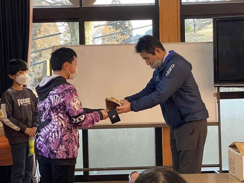 1月18日(木)上組小にも”大谷選手のグローブ”がやってきました。職員も子ども達も大喜び(どちらかというと職員が・・・)授与式を行い、披露しました。その日の昼休みに笑顔でキャッチボールをしていました。
