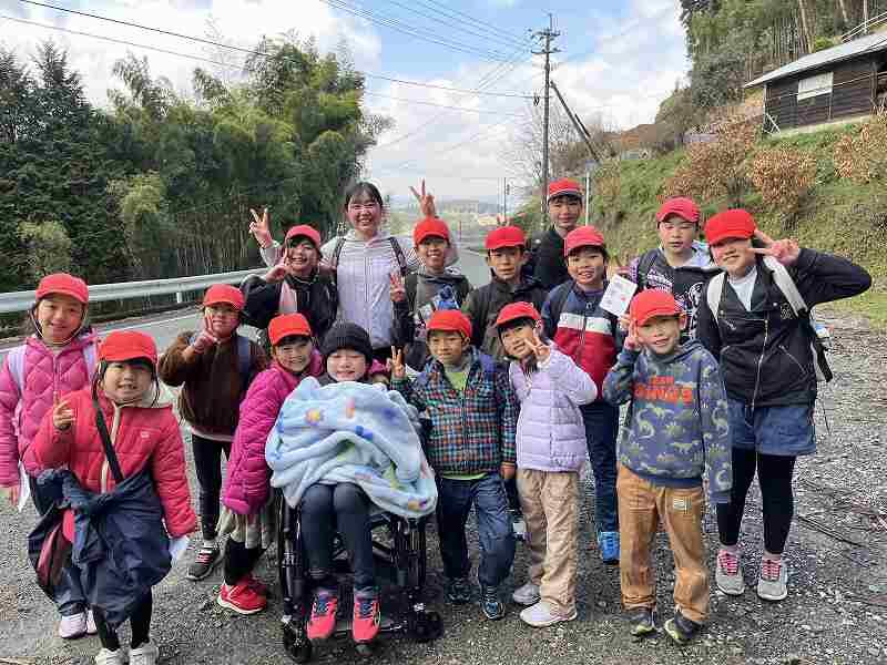 3月1日(金)は、お別れ遠足でした。8区(土生地区)にある福祉施設「ぬくもり」(元桑野内小学校)までの往復10kmを歩こうと計画していましたが、天候等のため、途中まで(約往復6km地点)となり、後は校内で楽しく過ごしました。