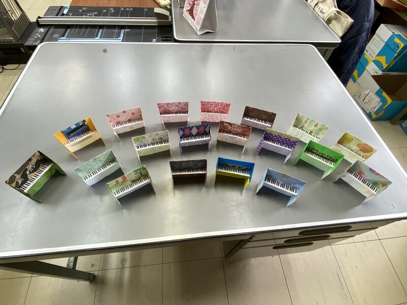 同じ日、東京会場でこのイベントに参加していた方から、折り紙で折られたピアノが届いたのです。どれも色鮮やかで、1つずつ手に取ってみると、想いを込めて丁寧におられているのが伝わります。よく見ると、私たち五ヶ瀬町のストリートピアノが印刷されたものも。