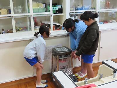 【いや!理科室は寒い~!!休み時間の度にストーブの周りに集まる子供たち。(でも、授業中は寒さに負けず頑張っていますよ!