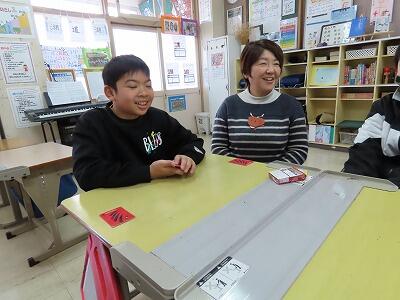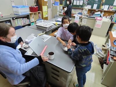 1,2年生教室から、楽しそうな声が聞こえてきたので行ってみると・・