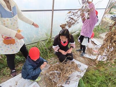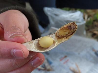 【一粒一粒、ていねいに取り出していました。きれいな大豆が殻から出てくると・・】