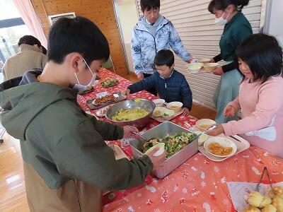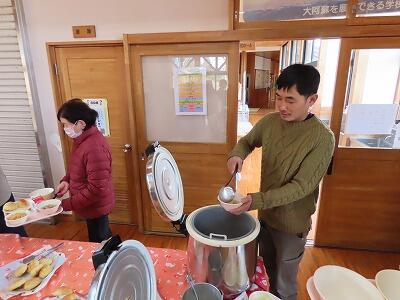 12月16日(月)、地産地消メニューとして、昨年各校で育てた大豆を使った味噌汁が出ましたが・・