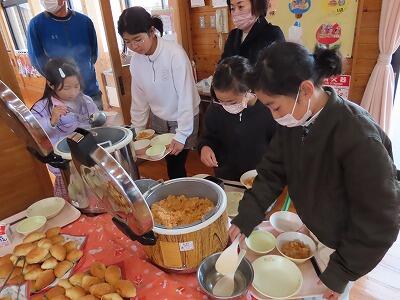 お味噌は、去年各学校で育てた大豆からできた手作り味噌です。