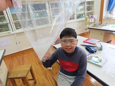 普段何気なくしている呼吸について、実験を通して、そのはたらきを知ることができた6年生です。