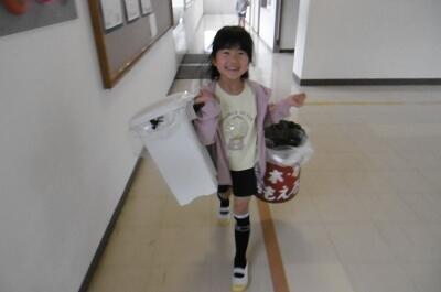 【ゴミ箱の整理も笑顔一杯で・・笑う