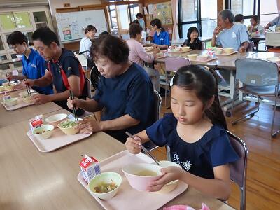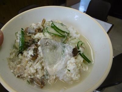 冷や汁です。食欲をそそる風味でサラサラと胃袋に入っていきました。(長年教師をやっていますが、給食で冷や汁を食べたのは初めてです。にっこり)】