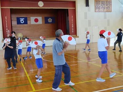 1,2時間目とはいえ、大変暑い中、子どもたちは、一つ一つの指示をしっかりと聞き、額に汗を流しながら一生懸命練習していました。