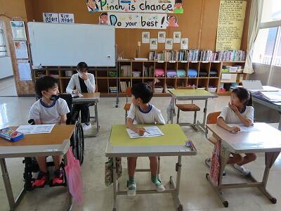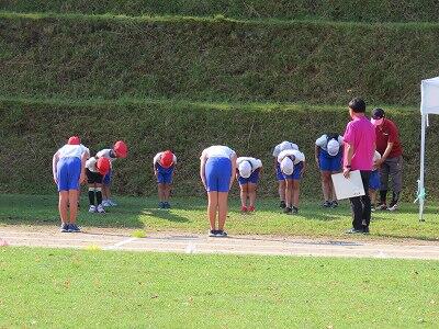 1,2時間目とはいえ、大変暑い中、子どもたちは、一つ一つの指示をしっかりと聞き、額に汗を流しながら一生懸命練習していました。
