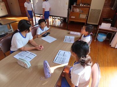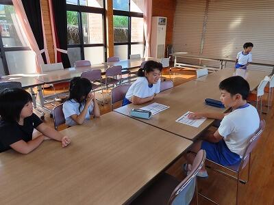 全体で、応援についての話し合いです。(放送担当以外の児童)