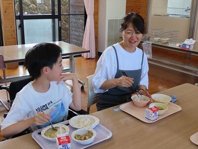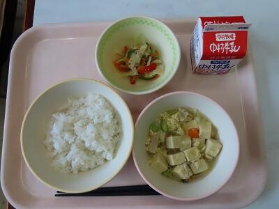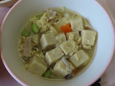【冷や汁です。食欲をそそる風味でサラサラと胃袋に入っていきました。(長年教師をやっていますが、給食で冷や汁を食べたのは初めてです。)】