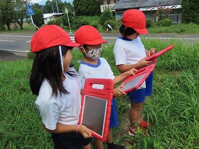 【1,2年生がタブレットを使って撮影会。モデルは・・・】