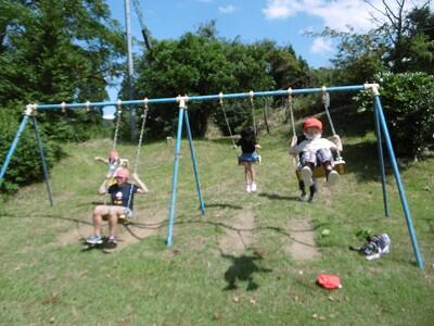 【満員御礼のブランコ遊び・・。秋の陽差しをいっぱいに浴びて、笑顔が輝いていました。時はさかのぼり・・】