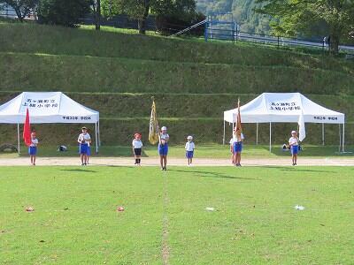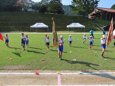 【開会式入場行進。(1・2、1・2・・・.もう少し、腕を大きく振り、足が高く上がるといいかな・・.次に期待!)】