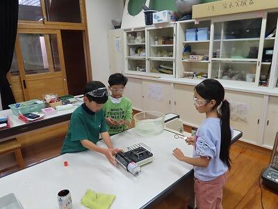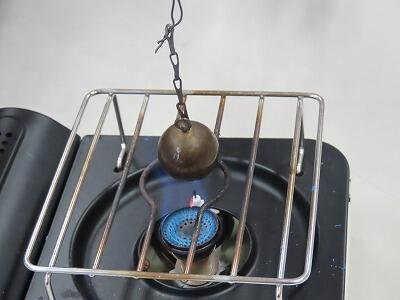 【実験用ガスコンロで30秒熱します。すると・・・】