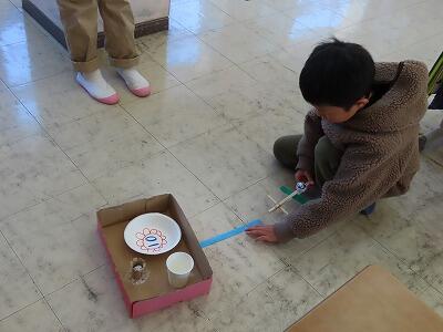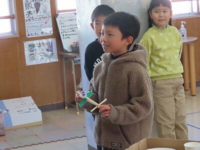 【上組小の自然を使ったおもちゃを紹介しに来てくれました。】