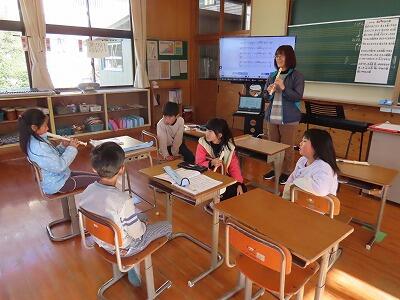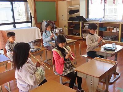 【リコーダーで「もののけ姫」を演奏中。学習発表会で上手に演奏できるように、これからがんばっていきます!】