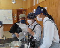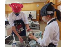 レシピを見て、協力しながら調理を行いました。さすが9年生だけあって、手際よく作っていました。ゴボウやにんじんの乱切りも上手です。みんな楽しそうに作っていました。美味しそうなにおいに誘われ、数人の職員は視察にいくほどの出来栄え。子ども達も満足そうでした。