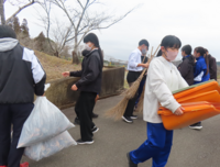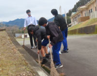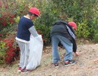 今回は、全校生徒を対象に希望者を募り、昼休みに「学びの坂」の清掃を行いました。すると、1年生から9年生の児童生徒、職員併せて約20名が参加してくれました。