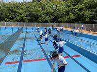5月27日(金)はプール清掃を行いました。本校のプールは幼稚園児から9年生まで使用するので、清掃も幼稚園児から9年生が行いました。担当の先生から清掃の目的や各学年の清掃場所の説明があった後、先生達も一所懸命掃除をしました。おかげで予定時間よりも短く終えることができました。現在、プールの水をためているところです。6月9日のプール開きが楽しみです。