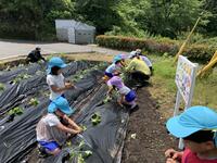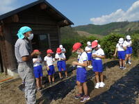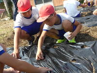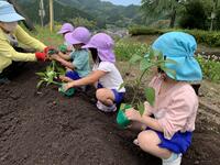 幼稚園の子どもたちは畑に植える花や作物の準備を5月初めから行い、31日には芋の苗を植えて畑が完成しました。花の苗の準備や実際の植え付け、どんな花が咲くのか、どんな実がなるのか、色々想像しながら活動しました。また、昨年は猿の被害に遭ったので、今年はその対策についても子どもたちから意見が出され、対策もしました。無事に植物たちが育つとよいです。