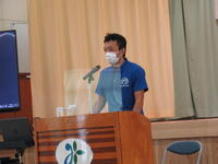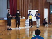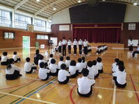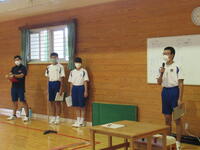 6月1日(水)の朝の活動時間に、地区中総体の激励会を行いました。後期ブロックは体育館に集まり、前期ブロックは各学級からオンラインで参加しました。各部活動のキャプテンが大会に出場するに当たっての抱負を述べました。聞いている子どもたちにも思いが伝わってくる熱い決意表明でした。ぜひ、悔いのない試合をしてきてほしいです。みんなで応援しています。