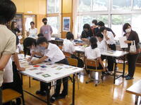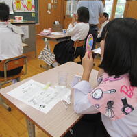 4年生は総合的な学習の時間で福祉をテーマにしています。その中で7月13日(水)に幼稚園児への福祉活動を行いました。目的は「幼稚園児を楽しませて、幸せになってもらうこと」でした。一緒に遊んだり、ポスターを作ったりしてみんな笑顔でした。最後に撮った集合写真からも目的が達成できたことが分かります。