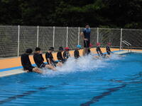 いよいよ水泳学習が始まります。6月8日(水)、緊急時に備えて、職員の救急法講習を行いました。講師の方から胸骨圧迫の仕方やAEDの使い方を学んだ後、実際にプールサイドでの模擬演習を通して学びを深めることができました。子ども達の安全な水泳指導に努めます。