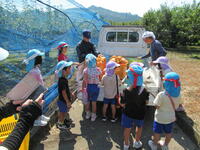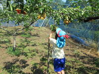 9月9日(金)は幼稚園児が町内の「ほりた果樹園」に梨狩りに行きました。たわわに実った梨を園児は見定めて、気に入った実を取っていました。また、届かない枝には先生方に抱えてもらいながら取り、満足そうでした。受け入れてくださった果樹園の方にもしっかりお礼が言えました。