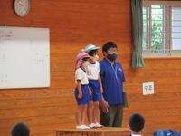 5月24日(火)に前期ブロックで「きれいな花を咲かせ隊」のリードで、みどりの少年団結団式が行われました。