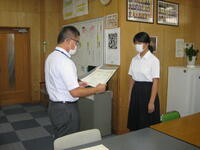 8月31日に日向・東臼杵地区の英語暗唱・弁論大会がありました。本校からは暗唱の部に2名(内1名はオープン参加)、弁論の部に1名参加しました。夏休みの間もALTの指導を受け、一生懸命練習に取り組みました。結果は優秀賞!素晴らしい結果でした。