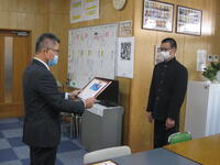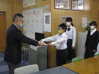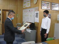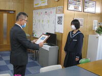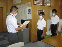 9月22日(木)に先月行われた英語暗唱弁論大会優秀賞2名とテニスのサンパークカップ3位入賞7年生ペアの表彰を行いました。両大会とも夏休み中に頑張って練習した成果です。おめでとうございます。