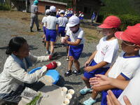 10月21日(金)の1・2年生の学活でも「お弁当の日」に向けた食育を行いました。担任、養護教諭、栄養士の先生から教えてもらいながら実際に「しゃかしゃかおにぎり」を作りました。できあがりを試食しながら満面の笑みを浮かべる1・2年生でした。