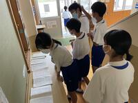 5月18日(水)に後期ブロックの「清掃集会」が行われました。本校では、毎週木曜日に幼稚園から9年生までが縦割りでの清掃「なかよし班清掃」を行っています。
