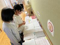 1学期途中から後期ブロックにおいて家庭学習での「自主勉(=自分の目標に向けて、自分で決めて取り組む課題)」を行っています。その取組内容を共有し、改善・意欲の向上を図るために展示を行いました。廊下に長机を設置し、自由に見られるようにしました。子どもたちは他学年の勉強を見てとても刺激を受けているようでした。