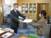11月8日(火)に、生徒会役員の退任式と任命式が行われました。退任式では校長先生から感謝状が授与された後、1年間役員を務めてきた感想や後輩への思いなどを役員全員が発表しました。その後の任命式では、校長先生から新役員全員に任命証が授与された後、新生徒会長が決意のあいさつを行いました。これからどんな活動が行われるか楽しみです。