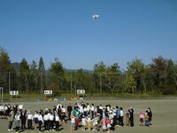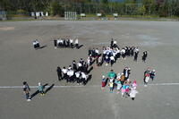 11月16日の昼休みに旭建設様のご厚意によるドローンでの撮影がありました。まぶしい日差しの中、みんなでドローンに手を振りました。撮影したデータもいただきましたが、とてもきれいに写っていました。ありがとうございました。