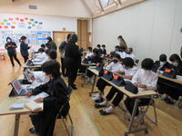 コロナ禍で地域の高齢者施設(清翠園)の方々と対面での直接交流が難しいことから、幼稚園では昨年度からリモートで交流をおこなっています。自己紹介をしたり、自分の得意なことを発表したりして、元気を届けています。また、今年は5年生もローカル5G実証事業の一環で、アバターロボットを活用した交流を行いました。調理実習の様子を見てもらったり、一緒にしりとりゲームをしたりと大変盛り上がりました。来年度は実際にお会いして交流できるとよいです。