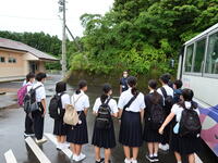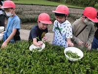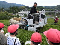 座学でしっかり学習(宮崎県は全国4位のお茶の産地など)した後にバスに乗って茶畑へ移動。お茶の新芽が想像以上に柔らかかったこと、茶工場では、茶摘みからお茶の製品になるまで様々な機械が使われていることなどを体験を通して学びました。
