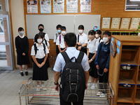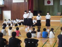 8月28日、2学期始業の日です。さっそく嬉しいニュースがありました。1学期末に4名の転出があり、寂しく思っていましたが、新たに2名の仲間が加わりました。始業式では1学期同様に真剣な表情で話を聞くみんなの姿がありました。さすが!西郷義務の子どもたちです。式後は、10月末に実施予定の「文化発表会」のスローガン発表と各種表彰がありました。「さあ、2学期・・・がんばっていくぞー!」