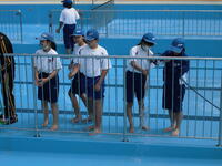 西郷義務教育学校自慢のきれいなプールでの水泳学習です。