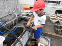 4年生が幼稚園児にやさしく言葉をかけ、熱心にプランターを洗う姿はとてもほほえましかったです。きっと「願いがいっぱいこもったきれいな花」が咲くことでしょう。